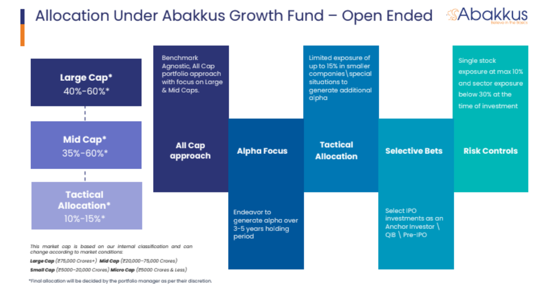 Abakkus follows a MEETS framework (Management, Earnings, Events, Timing, Structural) for investment evaluations, with quantified benchmarks for quality, growth, and valuations. This MEETS framework, is complemented by a 5D Investment Process (the defines the stock selection process starting from a larger universe to the coverage list & final portfolio companies), a 4C framework of what they avoid doing (chasing momentum, churn, copying & credit risks) and a strong risk-management framework. The investment philosophies & frameworks are amongst the most tightly defined in the industry.
