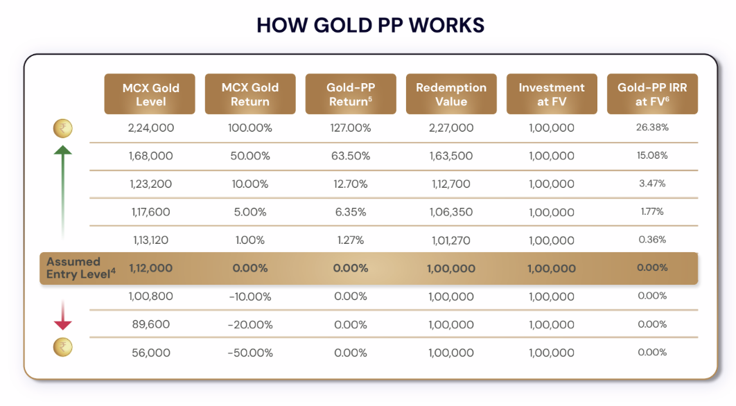 Edelcap's Gold PP MLD provides an attractive payoff of **1.27x MCX Gold returns on the upside, with principal protection on the downside**. This is clearly an attractive payoff structure, but investors should recognise the core inherent risk in all MLD products - **Credit risk on the issuer:** the Issuer of the MLD is essentially guaranteeing this payoff structure (any change would be considered a credit-event and the issuer can be taken to bancruptcy court). The core risk accordingly is with regards the credit worthiness of the issuer: our view on Edelcap is given in our AMC view below - **Close ended product:** in case of a sustained market downcycle in the last 6 months of the product, exit MCX levels are impacted which can lead to lower returns. Unlike open-ended equity funds, there is no ability to simply hold on until markets recover.